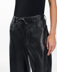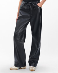 The Phoebe. Mid-rise pants with a relaxed fit and wide, full legs. Crafted from soft faux leather with a drawstring waistband that allows for a custom fit. Finished with logo embroidery on the back pocket. Size & Fit • Mid-rise relaxed wide leg, full-length • Fits true to size • Size small: 12" rise, 30.5" inseam, 20" leg opening • Model is 5'10" wearing size small Features & Details • 100% polyester • 100% PU coating • Dry clean only • Zip fly with button closure and drawstring • Unlined • Front scoop pockets and back patch pockets • Imported Product ID: RA6525F7MFL