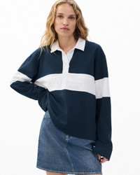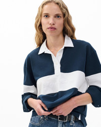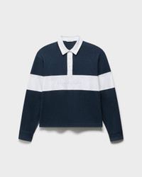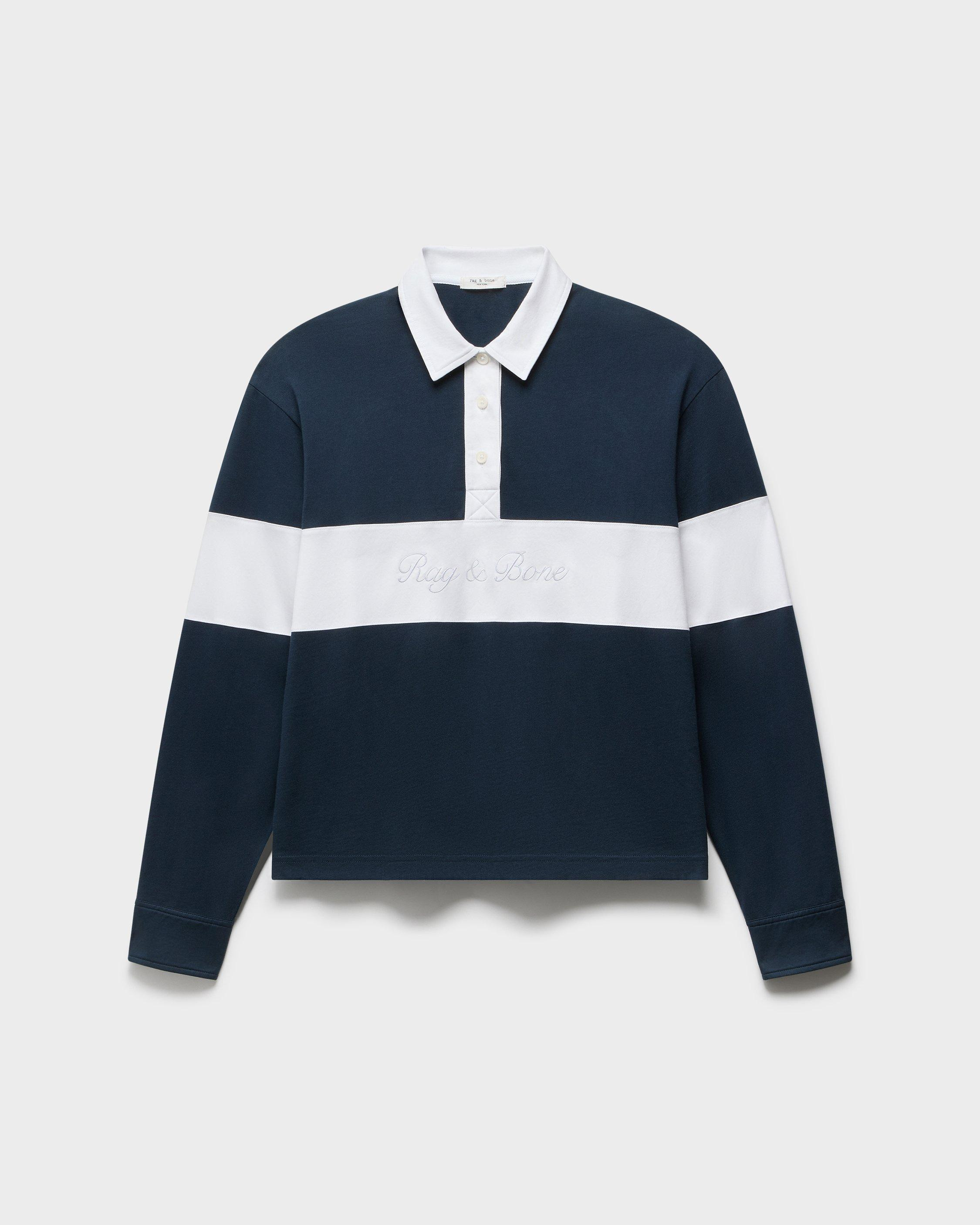 From the field to the street. A cotton rugby shirt reworked with contrast poplin panels and our signature script logo stitched in tonal thread at the chest. Low-key iconic. Size & Fit • Oversized fit • Fits large to size. Consider sizing down for a closer fit. • Size small: Body length 25.25", chest 46", sweep 46", sleeve length 24.5" Features & Details • 100% cotton • Machine wash cold on delicate & tumble dry low or dry clean • rag & bone embroidery • Made in Peru Product ID: RE0D25FT3KW