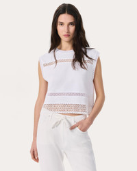 A feminine take on the muscle tank. Crafted for a slightly boxy, cropped fit from soft Peruvian cotton jersey with open-knit lace details and trims. Lean into its laid-back yet chic look by wearing with cutout jeans or a pair of relaxed beach pants. Size & Fit • Boxy fit • Fits true to size • Size Small: Body length 21", chest 40.5", sweep 40.5" • Model is 5'11" wearing size small Features & Details • 100% cotton • Machine wash cold on delicate & tumble dry low or dry clean • Lace combos • Made in Peru Product ID: WCC25PT001CH01