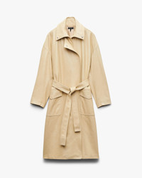 Outerwear at its finest. A sophisticated trench coat crafted from lightweight, buttery-soft lambskin in a rich hue exclusive to us. Finished with elegant details like a hidden asymmetric placket and snapped cuffs. Sculpt its oversized silhouette to your liking using the wide, removable belt. Size & Fit • Relaxed fit with adjustable tie at waist • Fits large to size. Consider sizing down for a closer fit. • Size Small: Body length 45.5", back length 45.5", chest 49", sleeve length 33" • Model is 5'11" wearing size small Features & Details • Body: 100% lamb leather • Lining: 100% polyester • Professional leather cleaner only • Hidden zipper at center front • Exposed and hidden snaps at center front flap, collar & pockets • Patch pockets at hip • Snap closure and waist tie • Imported Product ID: RA6A25F0MRU