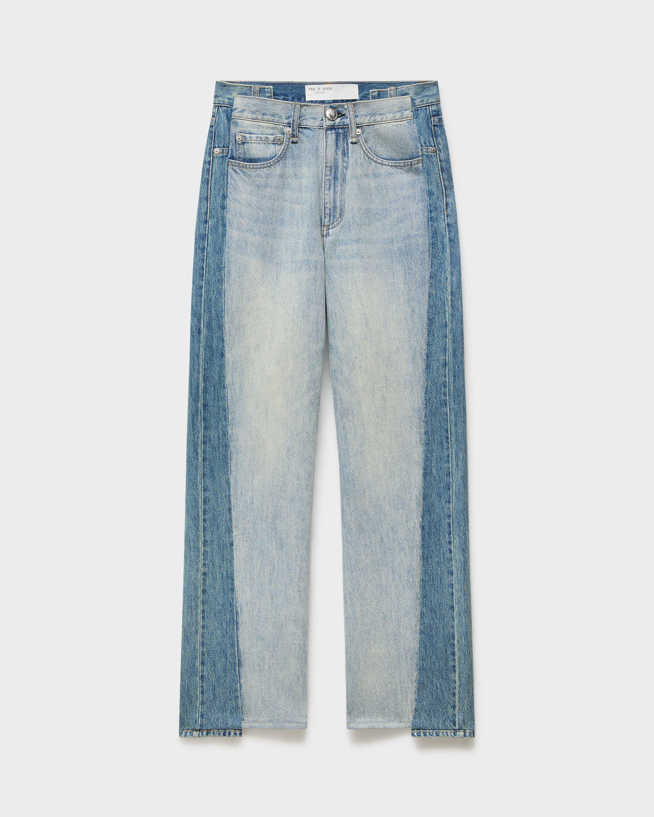 The Shea. High-rise jeans with a fitted waist and a relaxed, straight leg that hits at the ankle. An easy, everyday fit. Crafted from Lightweight Rigid non-stretch denim that provides structure, but breaks in over time for a soft and comfortable feel. In York Spliced, a hybrid of two light- and medium-dark indigo wash pairs with an asymmetric waist and hem. Size & Fit • High-rise • Straight fit, ankle-length • Fits true to size • Size 26: 11.75" rise, 30" inseam, 18.25" leg opening Features & Details • 100% cotton • Rigid Denim in York Spliced, a hybrid of two light and medium-dark indigo wash pairs with an asymmetric waist and hem • Machine wash cold inside out on delicate & lay flat to dry • Color may bleed • Signature dagger buttons & branded washer rivets • Zip fly with button closure • Five-pocket silhouette • Imported Product ID: RJ3825F1RYS