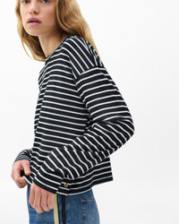 Easy does it. This relaxed, long-sleeve t-shirt is rib-knit from two types of lightweight, super-soft stretch yarn. Featuring button placket side details, this effortless pullover style pairs as perfectly with jeans as it does with a pair of suiting trousers. Size & Fit • Boxy fit • Fits true to size • Size small: Body length 20", chest 41.5", sweep 42.5", sleeve length 21.25" Features & Details • 48% rayon, 48% polyester, 4% elastane • Machine wash cold on delicate & lay flat to dry • Signature buttons at the lower sides • Imported Product ID: RE1C25FT3LW