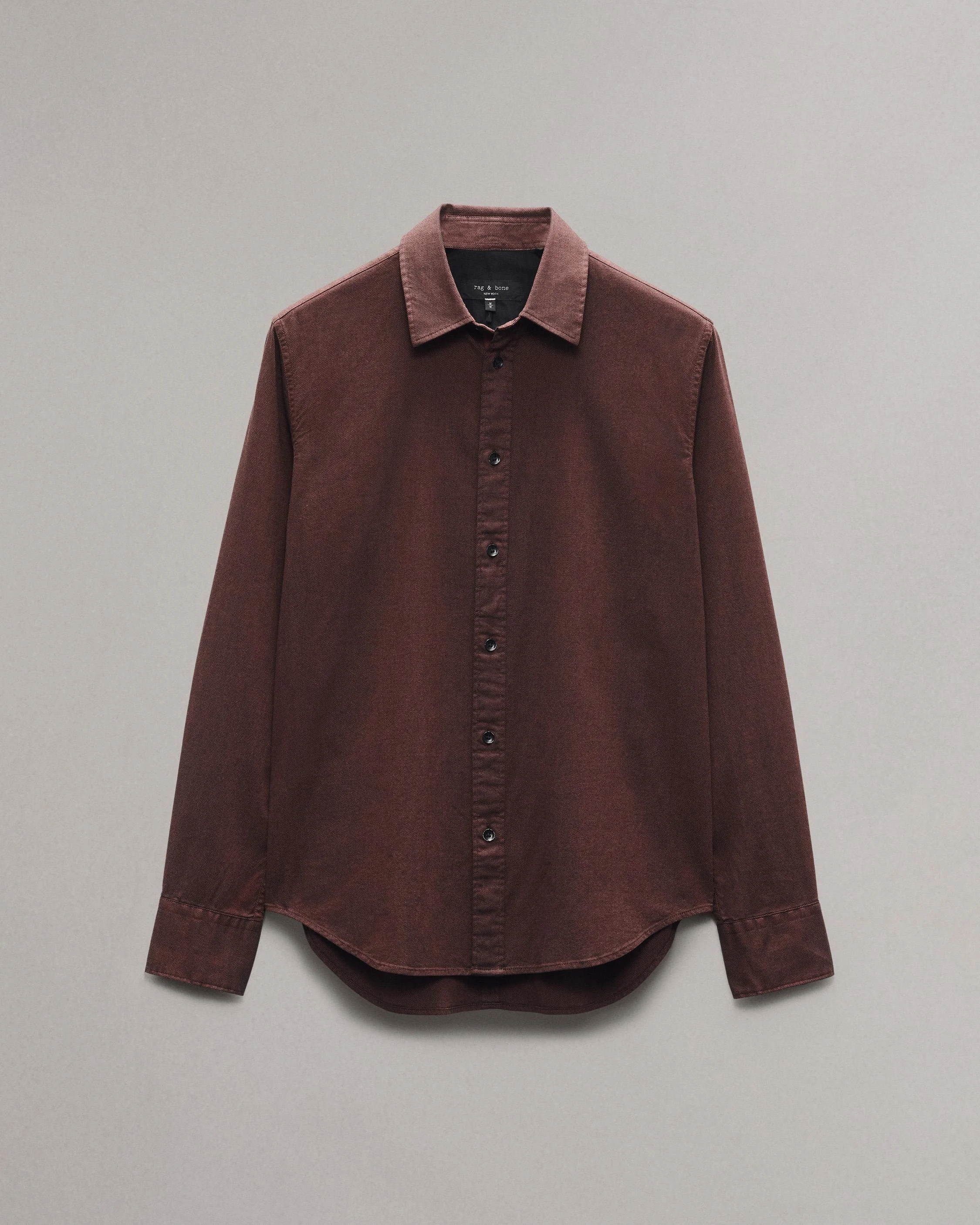 We updated our signature shirt in cotton dobby woven with a touch of stretch for comfort and the subtle texture of a small geometric pattern. Size & Fit Classic fit Size Medium: Center back length 30 1/4", chest 43 1/2", sweep 43", sleeve length 35 1/4" Model is 6'2.5" wearing a size medium Features & Details 98% Cotton 2% Spandex Machine wash cold separately gentle cycle, do not bleach, tumble dry low, use low iron if necessary or dry clean Black weft Imported Product ID: MBW24FA010BBML