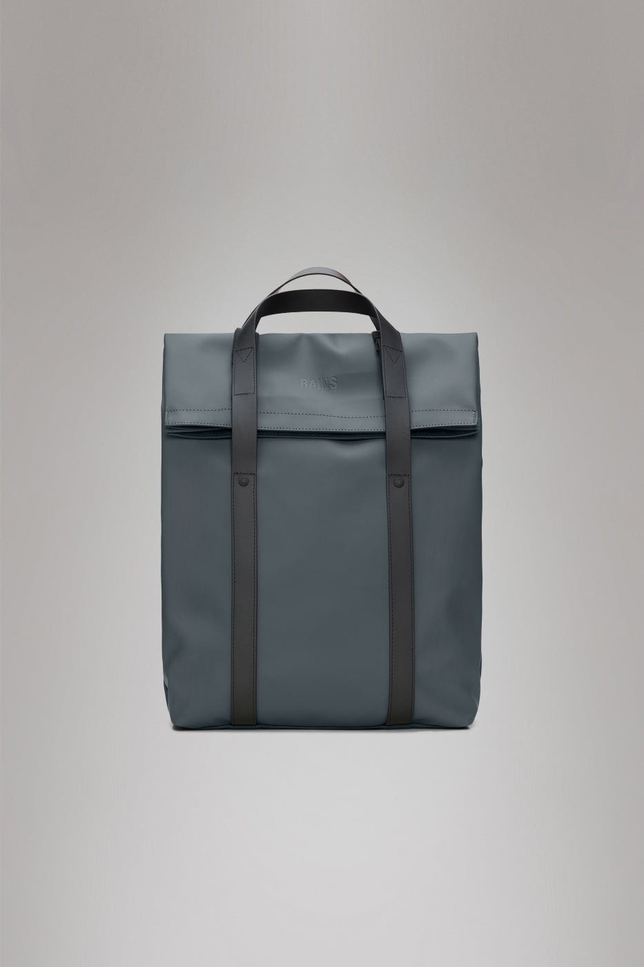 2 Way Tote Backpack is a clean, commuter-friendly design with tote function. 2 Way Tote Backpack is characterized by a fold-top opening and signature TPU strap details with top handles. The fold-top opening gives full access to a spacious main compartment with multiple slip and zip pockets and a padded pocket that fits a 16” laptop. On the backside you find a pocket with quick entry for smaller essentials like keys and phone. Wear the 2 Way Tote Backpack as a traditional backpack by adjusting the padded shoulder straps, or as a tote bag using the top handles. Snap attachments on the straps catch excess length of the straps when worn as a tote. 2 Way Tote Backpack is cut from Rains' signature PU fabric, engineered for carrying strength, durability and a smooth feel. SKU: 12940\124 Details Dimensions: 22.8 in x 4.7 in x 13 in Capacity: 4 gal Composition: 100.00% PES (Polyester) Water column: 8000 mm Weight: 28.9 oz Features - Waterproof signature PU fabric - Fold-top closure with secure c-clips at backside - Quick entry pocket on backside for small items - Internal padded pocket fits 16" laptop - Two internal slip pockets - Internal secure zip pocket - Adjustable padded shoulder straps - Padded mesh back panel - TPU top handles - Snap attachment on straps to catch excess length of the strap when worn as a tote - Trolley slip strap in webbing