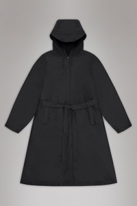 A-Line Longer W Jacket is a women’s raincoat characterized by its A-shaped silhouette and belt that elegantly accentuates the waist. This jacket is a longer version of Rains’ A-shaped womens raincoat. It features a drawstring hood with built-in cap, side pockets, hidden snap buttons for closure and adjustable snap cuffs. A-Line Longer W Jacket is completed with a belt to accentuate the waist for an individually fitted silhouette. The finish is soft with a lightweight feel and elegant drape. This waterproof women's coat is cut from Rains’ signature PU fabric and features welded seams making the jacket both resistant to water and wind. Underarm eyelets ensure ventilation for breathable comfort. SKU: 12040\01 Details Composition: 100.00% PES (Polyester) Water column: 5000 mm Windproof: Protection against windchill Fit: Longer Weight: 19.4 oz Features - Waterproof signature PU fabric - Hood with built-in cap and drawstring - Hidden snap buttons for closure - Belt at waist for a shaped silhouette - Welded pockets at sides - Snap adjustment at sleeve cuffs - Ventilation eyelets under arms