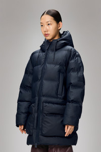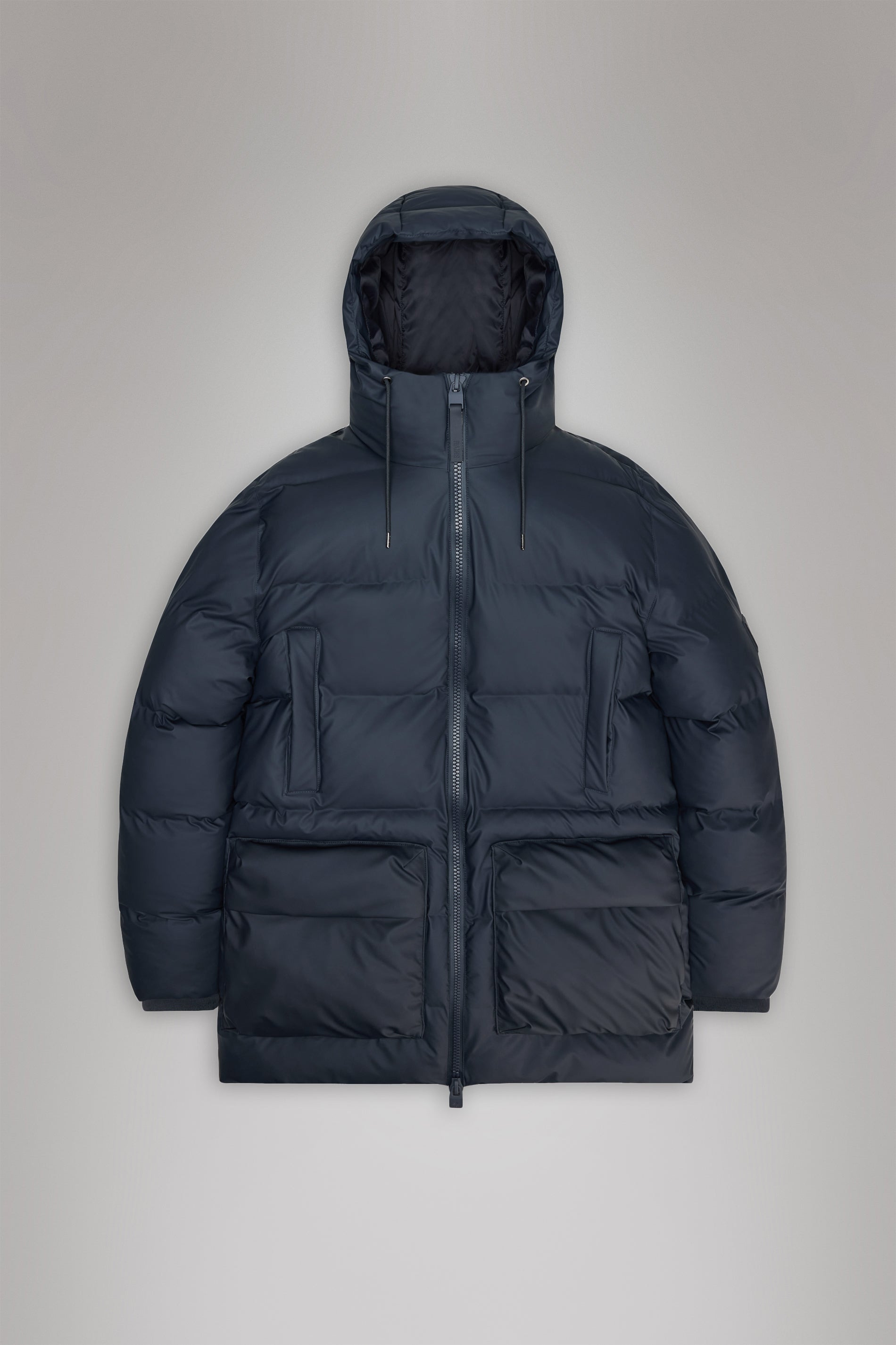 Alta Long Puffer Cargo Jacket is a waterproof winter jacket. Characterized by outside pockets and an easy-to-wear puffer aesthetic. The long and puffed jacket is designed with an inside zipped pocket, welt pockets at chest and outside zipped cargo pockets with side entrance and fleece lining. As part of the Alta series, the look features refined silhouettes, signature chamber widths and pared-back details. Finished off with ribbed storm cuffs and an insulated hood with drawstring. This elevated puffer is built on woven chamber technology and cut from Rains’ signature PU fabric with welded seams.The finish is lightweight with a smooth feel. SKU: 15210\47 Details Composition: 100.00% PES (Polyester) Water column: 5000 mm Breathability: 3.000 g/m2 water vapor transmission Windproof: Protection against windchill Fit: Long Weight: 43.7 oz Features - Waterproof signature PU fabric - Insulated hood with drawstring - Ribbed storm cuffs - Welt pockets with fleece lining at chest - Outside zipped cargo pockets with side entrance and fleece lining - Inside zipped pocket - Welded seams - Rubberized weatherproof hardware - Chin guard