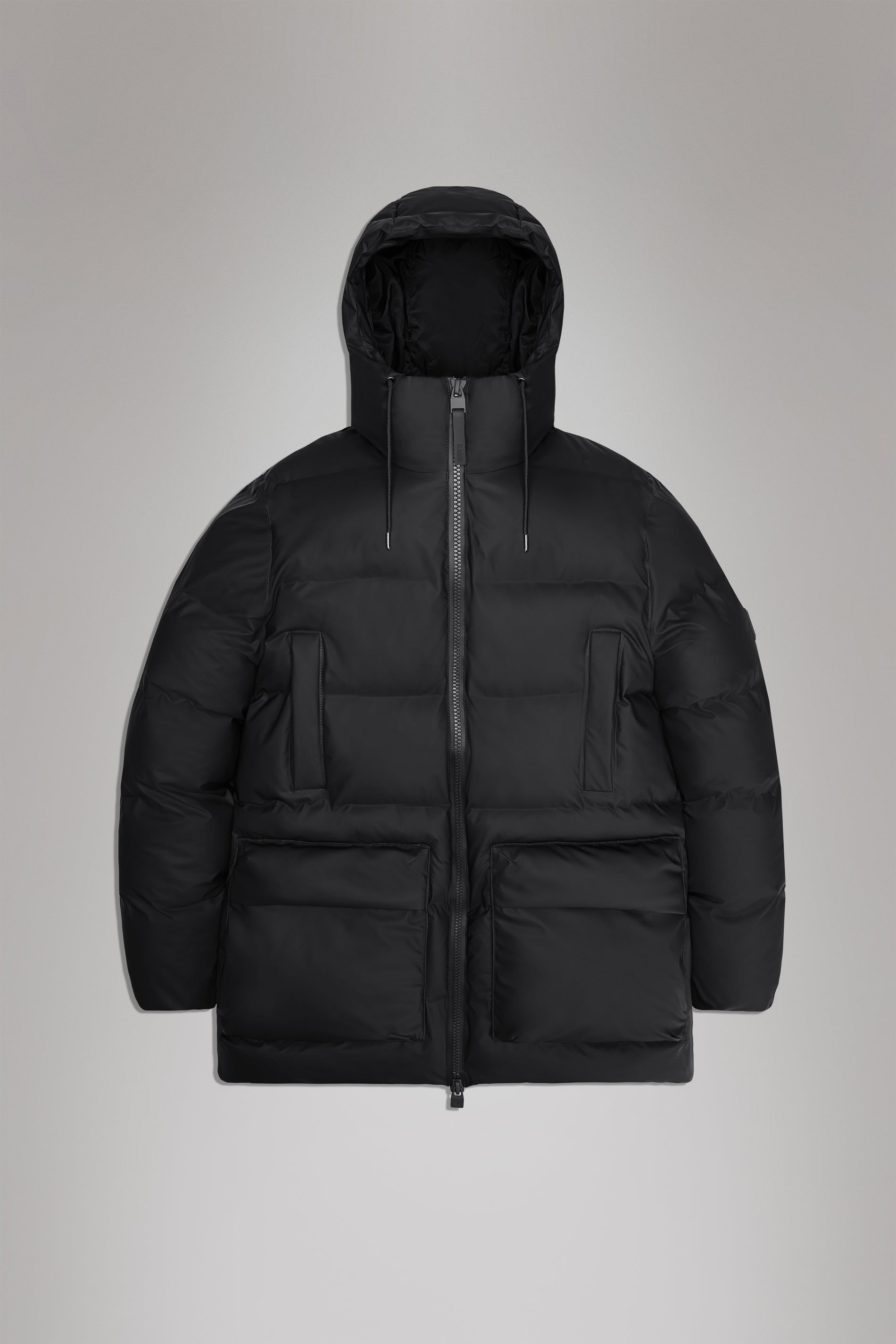 Alta Long Puffer Cargo Jacket is a waterproof winter jacket. Characterized by outside pockets and an easy-to-wear puffer aesthetic. The long and puffed jacket is designed with an inside zipped pocket, welt pockets at chest and outside zipped cargo pockets with side entrance and fleece lining. As part of the Alta series, the look features refined silhouettes, signature chamber widths and pared-back details. Finished off with ribbed storm cuffs and an insulated hood with drawstring. This elevated puffer is built on woven chamber technology and cut from Rains’ signature PU fabric with welded seams.The finish is lightweight with a smooth feel. SKU: 15210\01 Details Composition: 100.00% PES (Polyester) Water column: 5000 mm Breathability: 3.000 g/m2 water vapor transmission Windproof: Protection against windchill Fit: Long Weight: 43.7 oz Features - Waterproof signature PU fabric - Insulated hood with drawstring - Ribbed storm cuffs - Welt pockets with fleece lining at chest - Outside zipped cargo pockets with side entrance and fleece lining - Inside zipped pocket - Welded seams - Rubberized weatherproof hardware - Chin guard