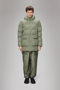 Alta Long Puffer Cargo Jacket is a waterproof winter jacket. Characterized by outside pockets and an easy-to-wear puffer aesthetic. The long and puffed jacket is designed with an inside zipped pocket, welt pockets at chest and outside zipped cargo pockets with side entrance and fleece lining. As part of the Alta series, the look features refined silhouettes, signature chamber widths and pared-back details. Finished off with ribbed storm cuffs and an insulated hood with drawstring. This elevated puffer is built on woven chamber technology and cut from Rains’ signature PU fabric with welded seams.The finish is lightweight with a smooth feel. SKU: 15210\108 Details Composition: 100.00% PES (Polyester) Water column: 5000 mm Breathability: 3.000 g/m2 water vapor transmission Windproof: Protection against windchill Fit: Long Weight: 43.7 oz Features: