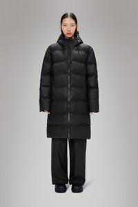 Alta Longer Puffer Jacket is a waterproof winter jacket. Characterized by refined silhouettes and an easy-to-wear puffer aesthetic. The Alta Longer Puffer Jacket is designed with an inside zipped chest pocket and concealed fleece-lined side pockets. As part of the Alta series, the look features signature chamber widths and pared-back details. The longer silhouette is finished off with an insulated hood with drawstring, keeping you warm and comfortable in the coldest climates. This elevated puffer is built on woven chamber technology and cut from Rains' signature PU fabric with double welded seams. The finish is lightweight with a smooth feel. SKU: 15130\01 Details Composition: 100.00% PES (Polyester) Water column: 5000 mm Breathability: 3.000 g/m2 water vapor transmission Windproof: Protection against windchill Fit: Longer Weight: 54.3 oz Features - Waterproof signature PU fabric - Insulated with signature chamber technology - Insulated hood with drawstring adjustment - 2-way coated zip closure with chinguard - Concealed fleece-lined side pockets - Internal zipped chest pocket - Concealed ribbed storm cuffs - Double welded seams - Rubberized weatherproof hardware - Longer fit