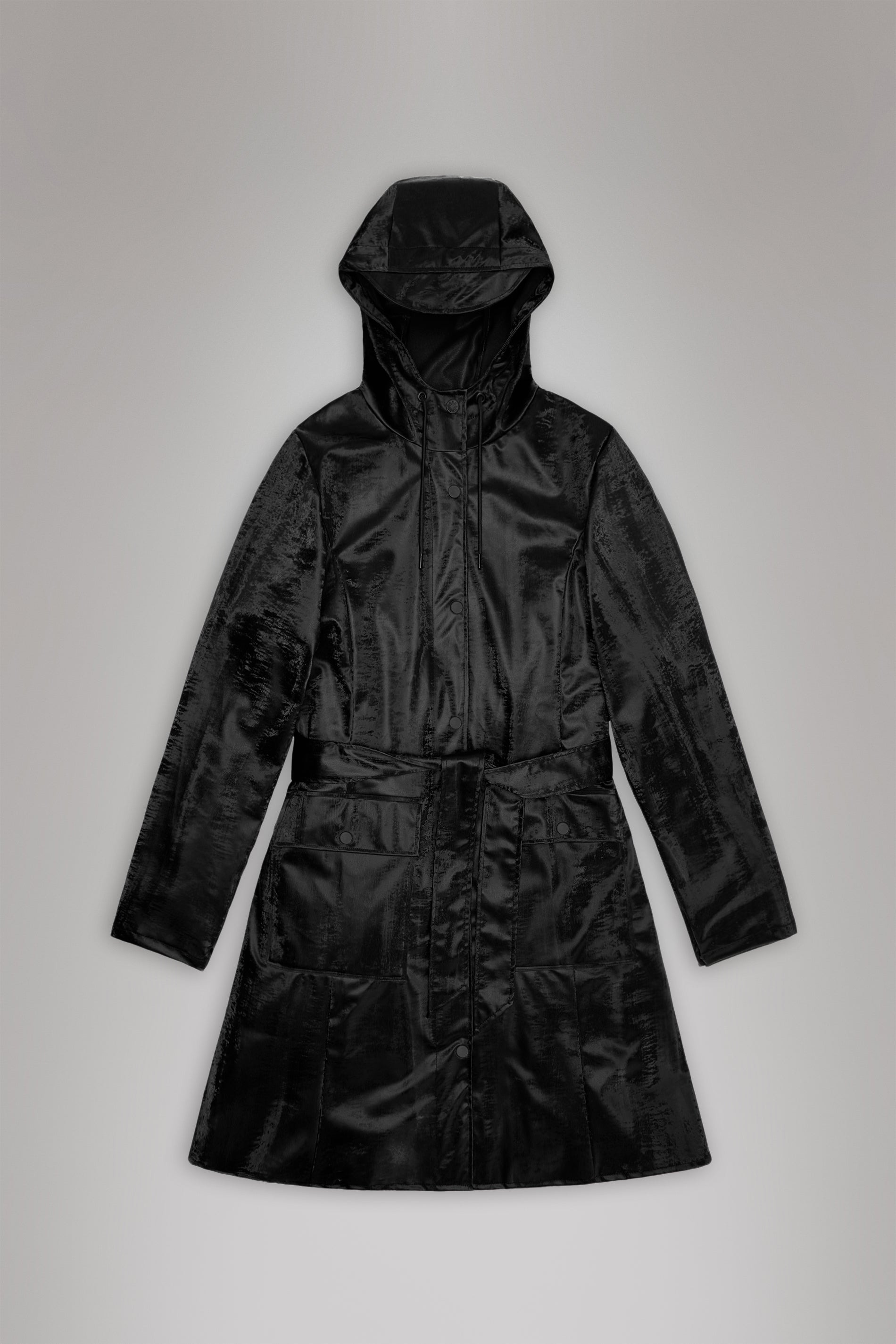 Curve Long Jacket is a clean women's raincoat with a slightly shaped silhouette accentuating the waist. Designed to block out water, wind and chill. This design with a minimal silhouette is Rains' interpretation of the women's trenchcoat. The design is figure-flattering with high functionality. Curve Jacket is a weather-ready staple designed with a drawstring hood with built-in cap, coated zip closure with snap-fastened placket and snap adjustment at sleeve cuffs. The look is completed with two front pockets and under-arm eyelets to ensure breathable comfort. This women's rain jacket is cut from Rains' signature PU fabric and features ultrasonically welded seams. The finish is lightweight with a smooth feel. SKU: 18130\131 Details Composition: 100.00% PES (Polyester) Water column: 5000 mm Windproof: Protection against windchill Fit: Long Weight: 17.6 oz Features - Waterproof signature PU fabric - Hood with built-in cap and drawstring - Coated zip closure including placket with snap fastenings - Belt at waist for shaped fit - Two front pockets with snaps - Snap adjustment at sleeve cuffs - Ventilation eyelets under arms - Welded seams - Fishtail hem - Slightly shaped fit