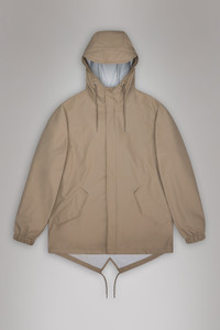 Fishtail Jacket is a unisex raincoat. Characterized by its pared-back aesthetic and drawstring fishtail hem. This design features utility-inspired pockets, vented back yoke and a hood with built-in cap and drawstring. Style is finished with elasticated cuffs for a tighter fit around wrist. Fishtail Jacket has a casual fit with an elegant drape, making it a clear cut raincoat for daily commutes. The coated zip closure is concealed by a placket with snap fastenings. This rain jacket is cut from Rains' signature PU fabric and features welded seams. The finish is lightweight with a soft feel. SKU: 18010\133 Details Composition: 100.00% PES (Polyester) Water column: 5000 mm Windproof: Protection against windchill Weight: 19.4 oz Features - Waterproof signature PU fabric - Hood with built-in cap and drawstring - Coated zip closure including placket with snap fastenings - Two utility front pockets - Elasticated cuffs for a tighter fit around wrist - Fishtail hem with drawstring - Elbow pleats for improved movement - Back yoke with concealed vents - Welded seams - Casual fit