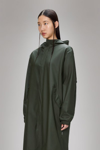 Fishtail Parka is a unisex raincoat. Characterized by its pared-back aesthetic and drawstring fishtail hem in parka-length. This design features utility-inspired pockets, vented back yoke and a hood with built-in cap and drawstring. Style is finished with elasticated cuffs for a tighter fit around wrist. Fishtail Parka has a casual fit with an elegant drape, making it a clear cut raincoat for daily commutes. The coated zip closure is concealed by a placket with snap fastenings. This rain jacket is cut from Rains' signature PU fabric and features welded seams. The finish is lightweight with a smooth feel. SKU: 18140\03 Details Composition: 100.00% PES (Polyester) Water column: 5000 mm Windproof: Protection against windchill Fit: Longer Weight: 22.2 oz Features - Waterproof signature PU fabric - Hood with built-in cap and drawstring - Coated zip closure including placket with snap fastenings - Two utility front pockets - Elasticated cuffs for a tighter fit around wrist - Fishtail hem with drawstring - Elbow pleats for improved movement - Back yoke with concealed vents - Welded seams - Casual fit