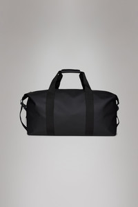 Hilo Weekend Bag Large is Rains’ take on the essential overnight bag – the largest of three sizes. Hilo Weekend Bag is a spacious, clean and contemporary travel bag, perfect for a weekend getaway. The design is balancing Rains’ waterproof fabric with signature straps and hardware details. Open the coated full-length zip to find a large single main compartment. It holds plenty of space for clothing, tech and more. Once packed, secure belongings via the silhouette’s side-mounted compression straps. The design is finished with webbing carry handles, with comfort sleeve, and attachment rings for an included detachable shoulder strap. Hilo Weekend Bag Large is cut from Rains’ signature waterproof PU fabric, engineered for carrying strength, durability, and a smooth feel. SKU: 14210\01 Details Volume (liter): 12.4 gal Composition: 100.00% PES (Polyester) Water column: 8000 mm Weight: 38.8 oz Features - Waterproof signature PU fabric - Coated zip closure - Single main compartment - Side compression straps - Detachable adjustable webbing shoulder strap - Webbing carry straps with handle wrap