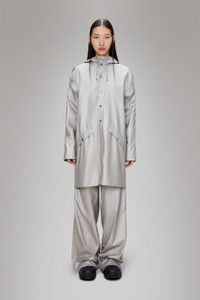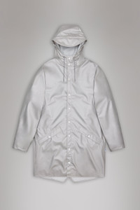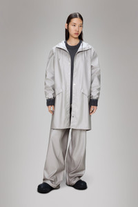 Long Jacket is an ever-contemporary unisex rain jacket. Characterized by a minimal silhouette in a long design. This rain jacket is a long version of Rains' classic rain jacket. It features a placket with snap fastenings for closure, hood with built-in cap and two side pockets with snaps. Sleeves are finished with snaps making them adjustable for a loose or tight fit. The design is easy-to-wear with an elegant drape. The unisex rain jacket is completed with under-arm eyelets and a back yoke with concealed vents for breathable comfort. Long Jacket is cut from Rains' signature PU fabric and features welded seams. The finish is lightweight with a smooth feel. SKU: 12020\123 Details Composition: 100.00% PES (Polyester) Water column: 5000 mm Windproof: Protection against windchill Fit: Long Weight: 19 oz Features: