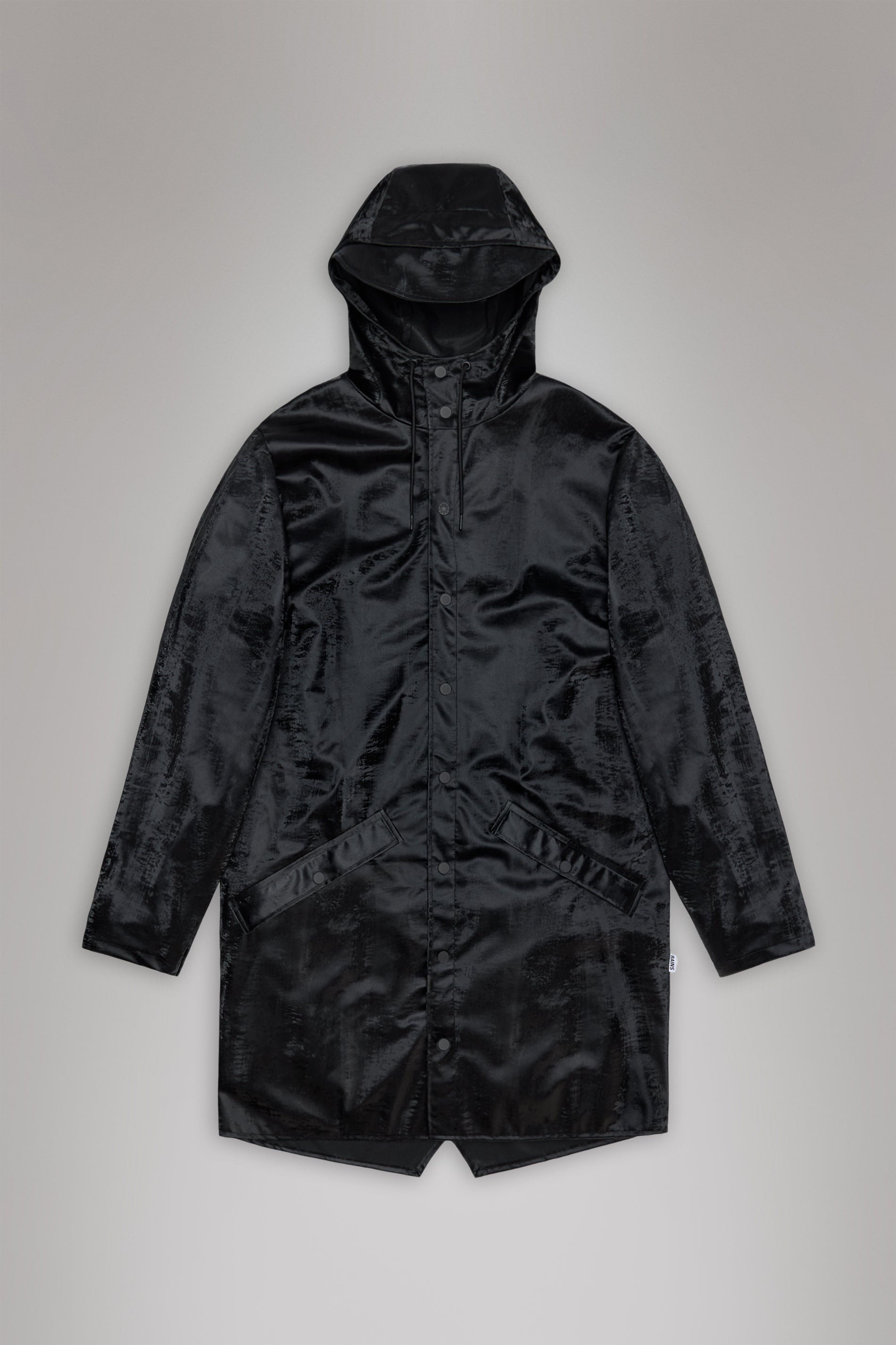 Long Jacket is an ever-contemporary unisex rain jacket. Characterized by a minimal silhouette in a long design. This rain jacket is a long version of Rains' classic rain jacket. It features a placket with snap fastenings for closure, hood with built-in cap and two side pockets with snaps. Sleeves are finished with snaps making them adjustable for a loose or tight fit. The design is easy-to-wear with an elegant drape. The unisex rain jacket is completed with under-arm eyelets and a back yoke with concealed vents for breathable comfort. Long Jacket is cut from Rains' signature PU fabric and features welded seams. The finish is lightweight with a smooth feel. SKU: 12020\131 Details Composition: 100.00% PES (Polyester) Water column: 5000 mm Windproof: Protection against windchill Fit: Long Weight: 19 oz Features:
