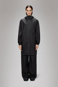 Long Storm Breaker is a unisex raincoat with a longer yet sporty and ever-contemporary design. This elevated long raincoat delivers extra wet-weather functionality in a minimal silhouette. Features include a two-way waterproof zipper, drawstring hood with built-in cap and elasticated cuffs. Long Storm Breaker is designed with adjustable part-reflective drawstring hem for an individually fitted look. Double welded front pockets, zip pocket at the chest and weather resistant hardware makes for a perfect easy, on-the-go rain jacket. Under-arm eyelets ensure ventilation for breathable comfort. The waterproof jacket is cut from Rains’ signature PU fabric and features welded seams. The finish is lightweight with a smooth feel. SKU: 12080\01 Details Composition: 100.00% PES (Polyester) Water column: 5000 mm Windproof: Protection against windchill Fit: Long Weight: 20.1 oz Features - Waterproof signature PU fabric, structured feel - Hood with built-in cap and drawstring - Elasticated cuffs for a tighter fit around wrist - Double welded seams and pockets at sides - Zip pocket at chest - Two-way waterproof zipper - Adjustable part-reflective drawstring hem - Ventilation eyelets under arm - Weather resistant hardware