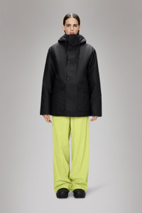 Nome Parka is a transeasonal piece with an urban aesthetic. This jacket delivers sharp edges with bold details. This parka style features cargo pockets with side entrance hidden below heat pressed pocket flaps and an inside zip pocket in tonal hardware. The silhouette is topped by an insulated hood with chunky tie cords. The Nome collection fills the gap between light and heavy thermal jackets. This parka has a regular fit with flat padded insulation creating your go-to jacket for city commutes in between seasons. The waterproof jacket is cut from Rains’ signature PU fabric with a strong and durable woven backside. The finish is clean with a sharpened look and a smooth feel. SKU: 21450\01 Details Composition: 100.00% PES (Polyester) Water column: 5000 mm Breathability: 3.000 g/m2 water vapor transmission Windproof: Protection against windchill Weight: 45.2 oz Features: