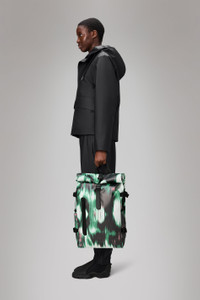 Rolltop Rucksack Large is a dependable city staple. The design interprets Rains' most iconic Rolltop Rucksack with larger proportions and additional functionality. Rolltop Rucksack Large is carefully designed to keep precipitation out when traveling from point A to Z. To protect essentials from rain, fold the rolltop into a tight scroll and secure using the signature carabiner. Open the rucksack to reveal a single main compartment. Exterior features include a side-access laptop pocket, front pocket with coated zipper and two side slip pockets. Cycle-ready features include a front D-ring -- ideal for holding bike locks -- and a buckle-fastened chest strap for a secure ride-proof fit. Rolltop Rucksack Large is cut from Rains' signature waterproof PU fabric, engineered for carrying strength, durability and a smooth feel. SKU: 14590\132 Details Dimensions: 24.8 in x 5.5 in x 12.6 in Capacity: 6.1 gal Composition: 100.00% PES (Polyester) Water column: 8000 mm Weight: 35.3 oz Features - Waterproof signature PU fabric - Rolltop opening with snap compression and carabiner closure - Single main compartment - Front pocket with coated zip - Side-access slip pocket fits 16" laptop - Two side slip pockets - Padded air-mesh back panel - Adjustable compression shoulder straps - Webbing carry handle - Adjustable chest strap