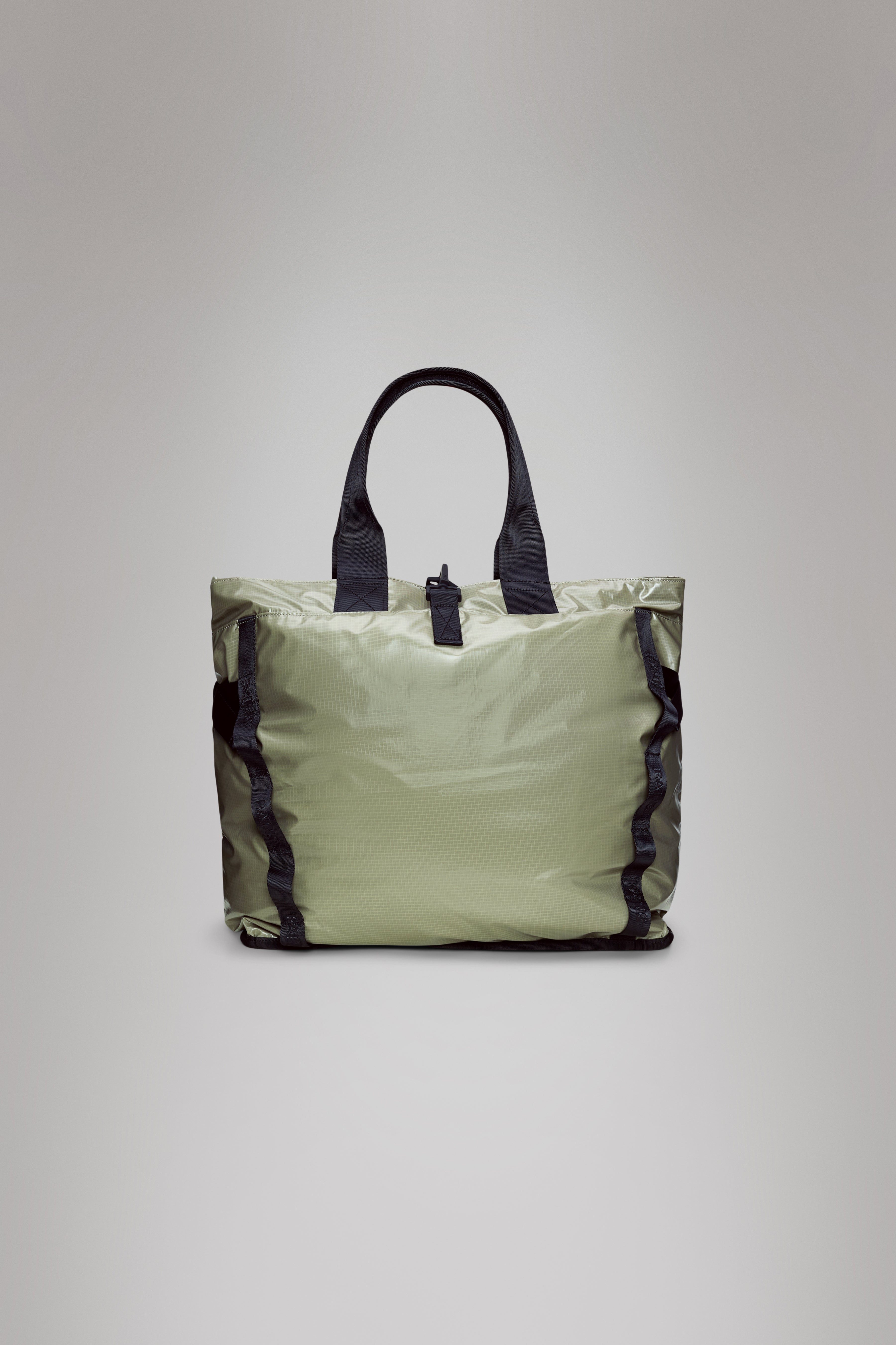 Sibu Shopper Bag is a dependable and versatile classic. It's cut from technical polyester and coated for all-weather protection. Sibu Shopper Bag is designed with intention, keeping its weight low and practicality high. This shopper is characterized by a neatly organized compartment with a smaller mesh pocket for loose essentials. In need of more space adjust the sturdy storage loops and compression straps to expand the volume of the bag. Externally, the design is fitted with a front slip pocket, signature rubberized buckles and logo-jacquard webbing trims. Sibu Shopper Bag is cut from Rains' technical polyester finished with a waterproof TPU coating. The design is sleek and lightweight with great durability SKU: 14760\108 Details Volume (liter): 11.4 gal Composition: 100.00% PA (Nylon) Water column: 10.000 mm Weight: 21.2 oz Features - Technical polyester with TPU coating - Coated zip closure with signature carabiner - Single main compartment - Internal mesh slip pocket - Front slip pocket - Signature rubberized buckles - Adjustable ergonomically shaped webbing compression straps - Carry handles - Webbing storage loops - Logo-jacquard webbing trims