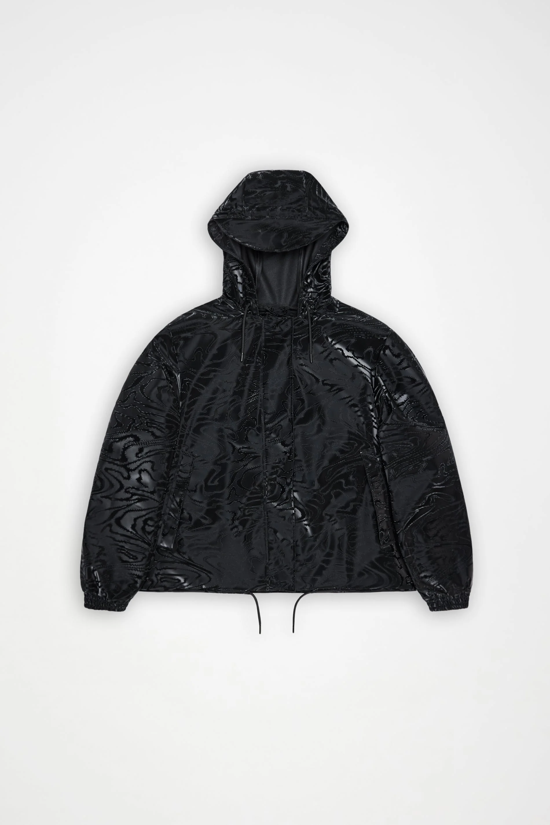 String W Jacket is a women's rain jacket in a loose and cropped fit. Design is characterized by a luxe-sport aesthetic. String W Jacket features a snap-fastened placket, double welded front pockets and elasticated cuffs for a tighter fit around wrist. Under-arm eyelets ensure ventilation for breathable comfort. This cropped silhouette can be altered through its drawstring hem, while a hood with built-in cap and drawstrings finishes the look. String W Jacket is cut from Rains' signature PU fabric and features welded seams. The finish is lightweight with a smooth feel. SKU: 18040\151 Details Composition: 100.00% PES (Polyester) Water column: 5000 mm Windproof: Protection against windchill Fit: Short Weight: 15.9 oz Features:
