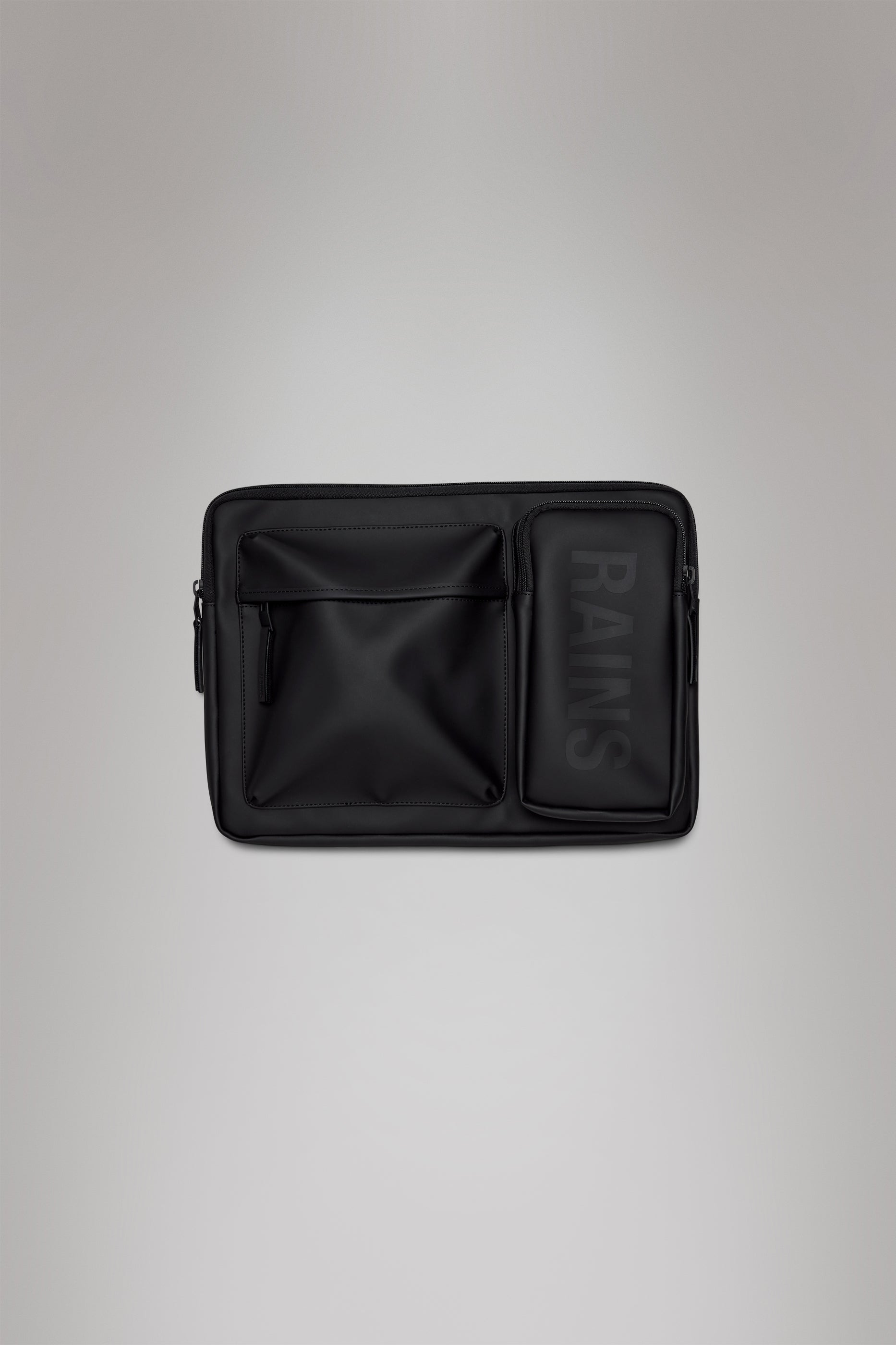 Texel 16" Laptop Case is a spacious waterproof cover with compartments for full-size tech and essentials. Texel Laptop Case is sized to fit 16" laptops. The sturdy cover is made from waterproof PU and padded for protection against inevitable knocks and bumps. The inside main compartment is fitted with a plush microfiber lining so tech slides seamlessly in and out. Texel Laptop Case is designed for a busy modern professional or student always on-the-move. Two external compartments come in useful for storing notebooks, airpods, charging cables, or memory drives. It's printed with a rubberized logo, just like other styles from the collection. Texel Laptop Case 16" is cut from Rains’ signature waterproof PU fabric, engineered for carrying strength, durability, and a smooth feel. SKU: 16670\01 Details Volume (liter): 0.7 gal Composition: 100.00% PES (Polyester) Water column: 8000 mm Weight: 20.8 oz Features - Waterproof signature PU fabric - Coated tonal zip closure - External slip pocket with coated zip - Single main compartment fits 16" laptops - Two external pockets - Rubberized print logo