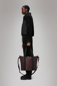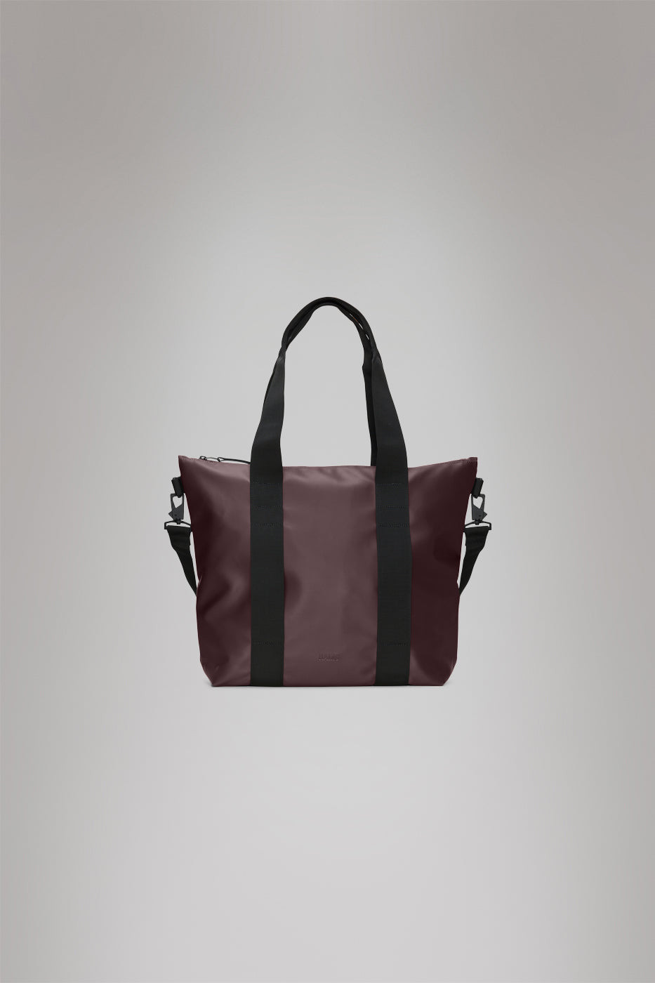 Tote Bag Mini is a waterproof tote perfect for shopping, commutes or the office. Characterized by an elevated utility-look and functional details. The full-length coated zip reveals a spacious main compartment for everyday essentials. Designed to meet your carry-needs, Tote Bag Mini offers various carrying options through its detachable shoulder strap and long hand/shoulder handles. Carry handles feature attachment rings for small items like keys. Tote Bag Mini is cut from Rains' signature PU fabric, engineered for carrying strength, durability and a smooth feel. SKU: 14160\129 Details Dimensions: 14.2 in x 5.1 in x 15.7 in Capacity: 4.2 gal Composition: 100.00% PES (Polyester) Water column: 8000 mm Weight: 21.2 oz Features - Waterproof signature PU fabric - Coated tonal zip closure - Single main compartment - Long hand/shoulder webbing handles with attachment ring - Detachable webbing shoulder strap