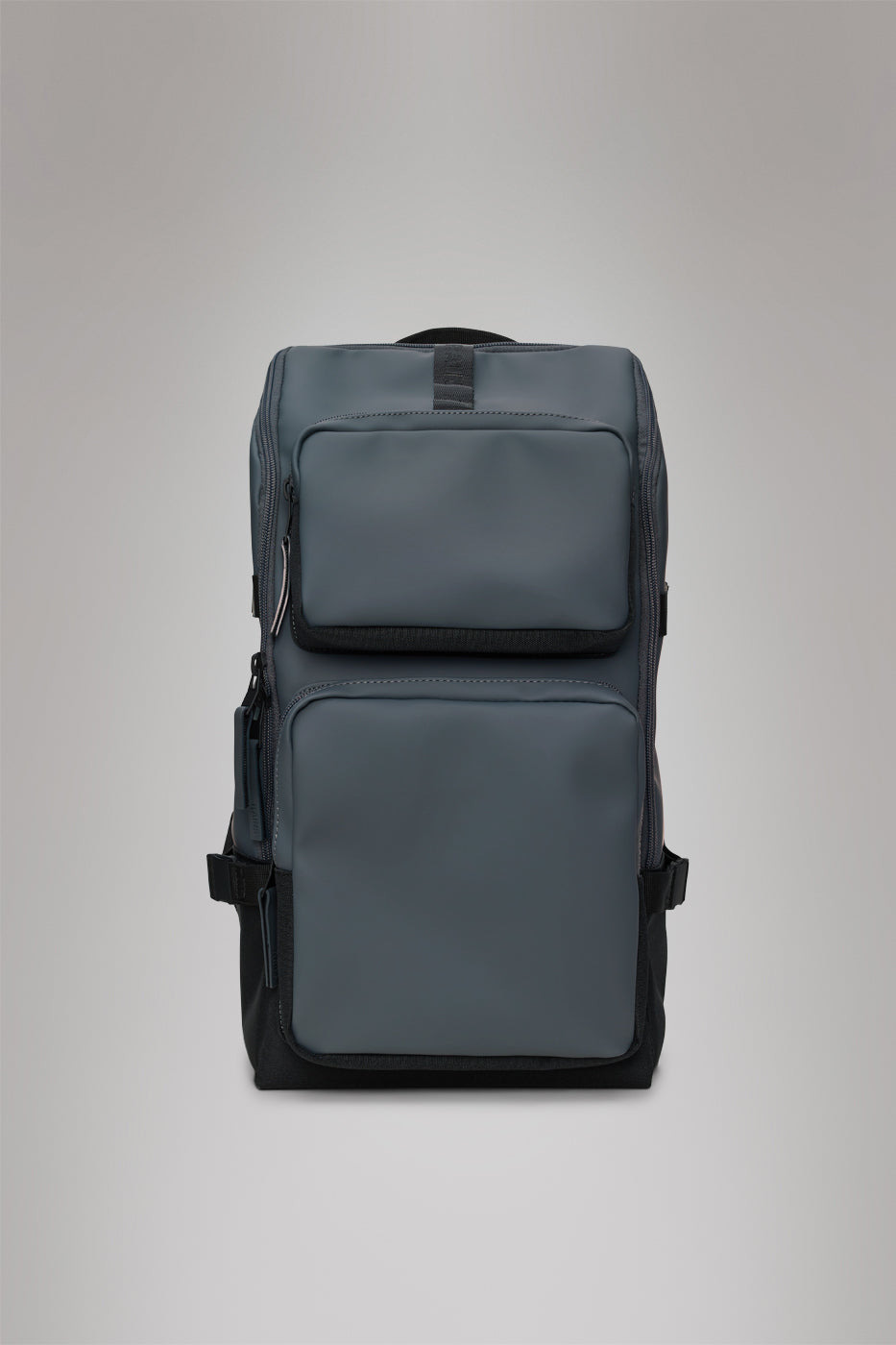Trail Cargo Backpack is a take on the classic Trail Backpack, offering lots of features, functional details and outside pockets. The Trail Cargo Backpack features an internal laptop pocket, a spacious main compartment and two square front zip pockets, providing plenty of storage space. This design leans into the sports-utility mood of the Trail family. The laptop pocket fits a 13" laptop, making the Trail Cargo Backpack a perfect computer-ready staple. Trail Cargo Backpack is cut from Rains' signature PU fabric, engineered for carrying strength, durability and a smooth feel. SKU: 14330\124 Details Dimensions: 17.7 in x 4.7 in x 10.2 in Capacity: 3.7 gal Composition: 100.00% PES (Polyester) Water column: 8000 mm Weight: 31 oz Features - Waterproof signature PU fabric - Coated zip closure - Single main compartment - Two front zip pockets - Padded pocket fits 13" laptop - Padded mesh back panel - Two compression straps with buckles at sides - Webbing carry handle - Adjustable padded shoulder straps - Adjustable chest strap