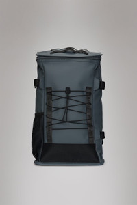 Trail Mountaineer Bag has a clear outdoor inspiration, resulting in a functional and sporty backpack. Characterized by a boxy silhouette and sporty details. This waterproof bag with a squared silhouette opens up to a spacious main compartment. Features include a zip pocket at top flap and a mesh water bottle pocket at side. The outside is equipped with bungee cords for external storage. This design leans into the sports-utility mood of the Trail family. It is detailed with webbing-strap-mounted buckles to compress the bag, keeping contents in place. Trail Mountaineer Bag is worn by the padded shoulder straps and secured by a chest strap. Trail Mountaineer Bag is cut from Rains' signature PU fabric, engineered for carrying strength, durability and a smooth feel. SKU: 14340\124 Details Dimensions: 19.3 in x 6.7 in x 11.8 in Composition: 100.00% PES (Polyester) Water column: 8000 mm Weight: 31 oz Features - Coated zip opening - Single main compartment - Zip pocket in top flap - Mesh bottle pocket - External back zip pocket - Padded pocket fits 16” device - Side compression straps with buckles - Bungee cord external storage - Adjustable padded backstraps - Webbing carry handle - Adjustable chest strap - This product is designed to withstand light to moderate weather conditions