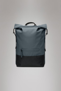 Trail Rolltop Backpack is a sporty city staple, perfect for commutes on bike or foot. Trail Rolltop Backpack is characterized by a convenient rolltop opening. To protect essentials from rain, fold the rolltop into a tight scroll and secure using the snap compressions. This design leans into the sports-utility mood of the Trail family. It is detailed with an internal padded pocket and a front zip pocket for easy access. Finished off with a buckle-fastened chest strap for a secure ride-proof fit. Trail Rolltop Backpack is cut from Rains' signature PU fabric, engineered for carrying strength, durability and a smooth feel. SKU: 14320\124 Details Dimensions: 18.5 in x 5.1 in x 14.2 in Capacity: 5.8 gal Composition: 100.00% PES (Polyester) Water column: 8000 mm Weight: 31.7 oz Features - Waterproof signature PU fabric - Rolltop opening with snap compression - Single main compartment - Front pocket with coated zip - Internal padded pocket - Side-mounted webbing straps with buckle closures - Padded air-mesh back panel - Webbing carry handle - Adjustable padded shoulder straps - Adjustable chest strap