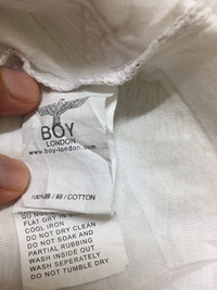 OFFER YOUR BEST PRICE.. Item : BOY LONDON Colour : WHITE Tagged size : M { MANUAL MEASUREMENT} Armpit (pit to pit) : 20 inch Length : 27 inch { CONDITION } Item is an excellent vintage condition { PAYMENT } Accept “PAYPAL” only I will using DHL EXPRESS I will be ship after received a payment and give tracking number. After 7-14 working days of shipping from Malaysia, please check and give your parcel tracking number to your national post. Please contact to me with any question { REFUND POLICY } No return, exchange and refunds after purchase Thanks for visit