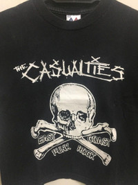 The Casualties are an American street punk band which was formed in New York City, New York in 1990. It was formed by vocalist Jorge Herrera, Hank (guitar), Colin Wolf (vocals), Mark Yoshitomi (bass) and Yureesh Hooker (drums). On July 11, 2017 it was announced on the band's Facebook page, that original frontman Jorge Herrera had officially retired from touring.[2][3] The band as of July 2017 consists of members Jake Kolatis (Guitarist), Marc Meggers (Drums), Rick Lopez (Bassist), and David Rodriguez (Vocals). ITEM : THE CASUALTIES COLOUR : BLACK BRAND : AMERICAN ACTIVEWEAR TAGGED SIZE : M ARMPIT (pit to pit) : 15 INCH LENGTH (top of the collar to bottom of shirt) : 18 INCH Material : 100% cotton Made in : USA Stich : All Double Stich Condition : Bundle Items / USED / Condition 9/10 (A) PAYMENT : Accept “PAYPAL” only I will be ship after received a payment and give tracking number. After 7 – 14 days working days of shipping from Malaysia, please check and give your tracking number parcel to yout national post. Receiving the parcel within 14 – 28 days working days. Please contact to me with any question Thank you very much for your visit