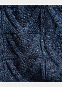 Aran-knit from cotton slub yarn for added texture. Racking stitch details at the collar and placket. Ribbed cuffs and hem. Genuine horn buttons. DETAILS - Size medium has a 26" body length (front and back), a 17" shoulder, a 40" chest, and a 24½" sleeve length. Sleeve length changes ½" between sizes. - Shawl collar with a two-button closure at the right side. Five-button placket. Genuine horn buttons. - Long sleeves with rib-knit cuffs. - Two front waist patch pockets. - Rib-knit hem. - 100% cotton. - Machine washable. - Imported. Style Number: 607542