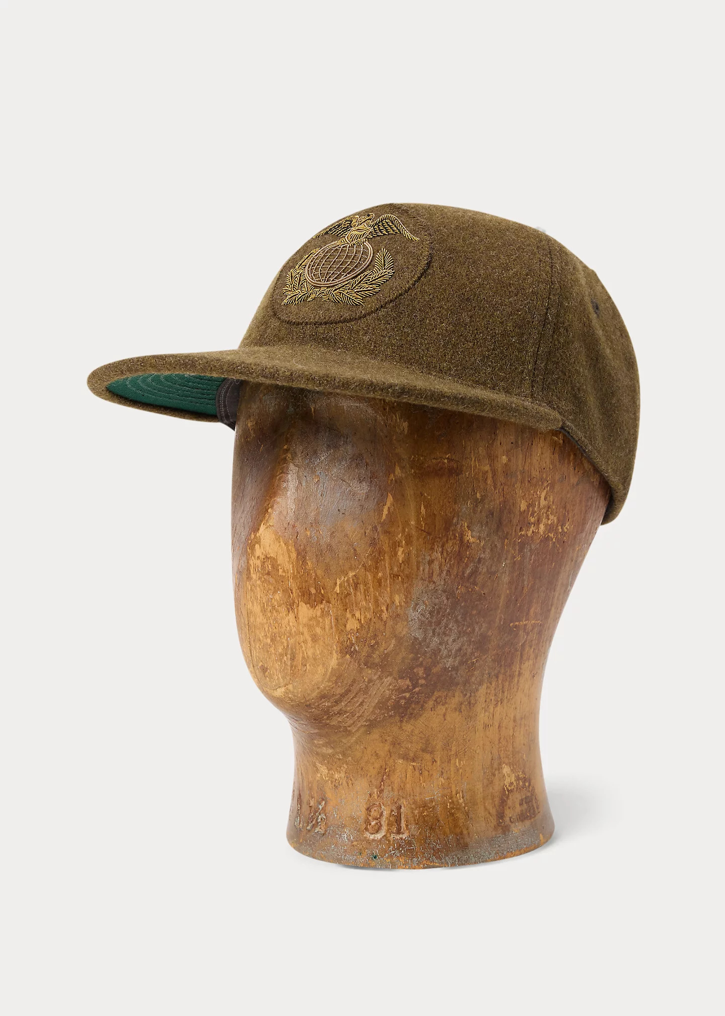Made with wool-blend felt. Eagle-and-globe bullion patch at the front. Signature green underbill. Leather strap at the back with an antiqued-brass buckle. DETAILS - Seamed bill. Signature green underbill. - Six-panel construction. - Ventilating embroidered eyelets. - Eagle-and-globe bullion patch at the front. - Twill sweatband. Lined at the front panels. - Adjustable leather strap at the back with an antiqued-brass buckle. - 22.75" inner circumference. - Shell: 60% wool, 40% viscose. Underbill: 100% cotton. Front panel lining: 76% polyester, 24% cotton. Strap: 100% leather. - Dry clean. Imported. - Style Number: 100056614