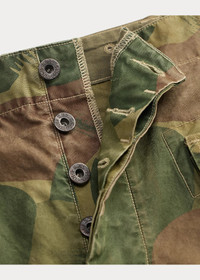 Classic-fitting pants made with cotton poplin. Printed with a 1950s-inspired camo motif. Vintage surplus–style construction. Cargo pocket at the seat and each hip. Drawstring hems. Heavily abraded and pigmented for a timeworn look. DETAILS - Classic fit with a straight leg and long rise. - Size 32W has a 13" rise and an 18.5" leg opening. - Belt loops. Embroidered eyelets at the waistband. Button fly with a buttoned closure. American-made metal buttons. - Cargo pocket at the seat and each hip. - Drawstring hems. - 100% cotton. - Machine washable. - Imported. - Style Number: 100082841