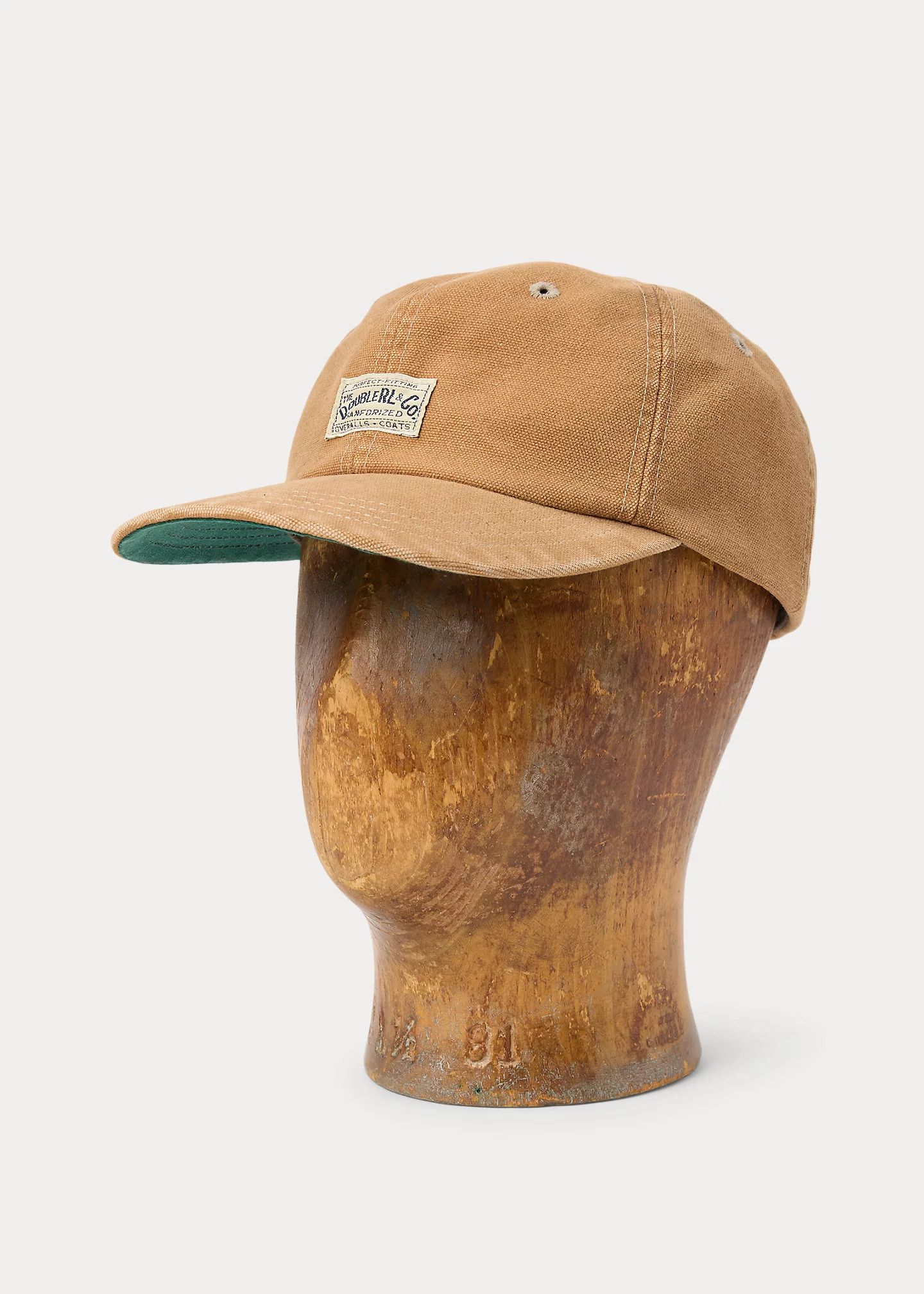 Vintage-inspired ball cap made with cotton canvas. Designed with a slightly deeper crown than the standard model. Woven logo label at the front. Leather strap at the back with an antiqued-brass buckle. DETAILS - Seamed bill. Signature green underbill. - Six-panel construction. Ventilating embroidered eyelets. - Twill sweatband. - Woven “Double RL & Co.” label at the front. - Adjustable leather strap at the back with an antiqued-brass buckle. - 22.75" inner circumference. - Shell: 100% cotton. Strap: 100% leather. - Hand wash or dry clean. - Imported. - Style Number: 100056613