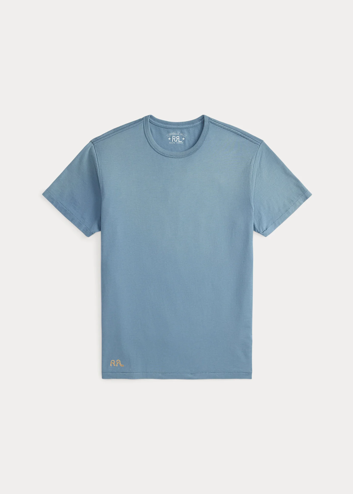 Made with soft cotton jersey. Seamless construction authentically recreated from ’40s basic training T-shirts. Garment-dyed and washed to create a timeworn look. “RRL” embroidered at the left hem. DETAILS - Size medium has a 27.5" front body length, an 18.25" shoulder, and a 41" chest. - Crewneck. - Short sleeves. - “RRL” embroidered at the left hem. - 100% cotton. - Machine washable. - Imported. - Coloring may rub off onto fabrics and upholstery. - Style Number: 100086514