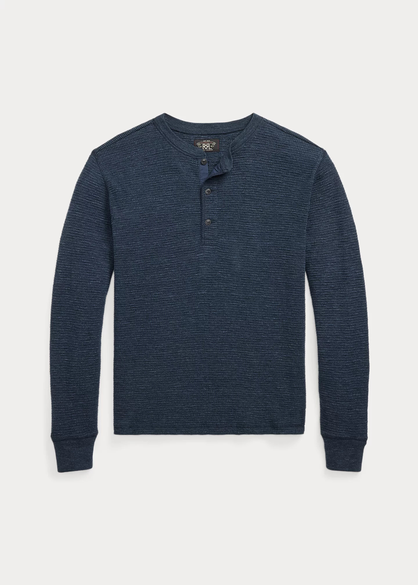 Made with substantial waffle-knit cotton fabric. Garment-dyed with pigment. Sateen placket facing. Ribbed trims. Tonal stitching. Vintage-inspired buttons. Washed for softness. DETAILS - Size medium has a 27.5" front body length, a 17.5" shoulder, a 38" chest, and a 34.5" sleeve length. Sleeve length is taken from the center back of the neck. - Henley neckline. Three-button placket with sateen facing. - Long sleeves with ribbed cuffs. - 100% cotton. - Machine washable. - Imported. - Style Number: 100059357
