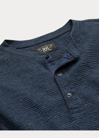 Garment-Dyed Waffle-Knit Henley Shirt