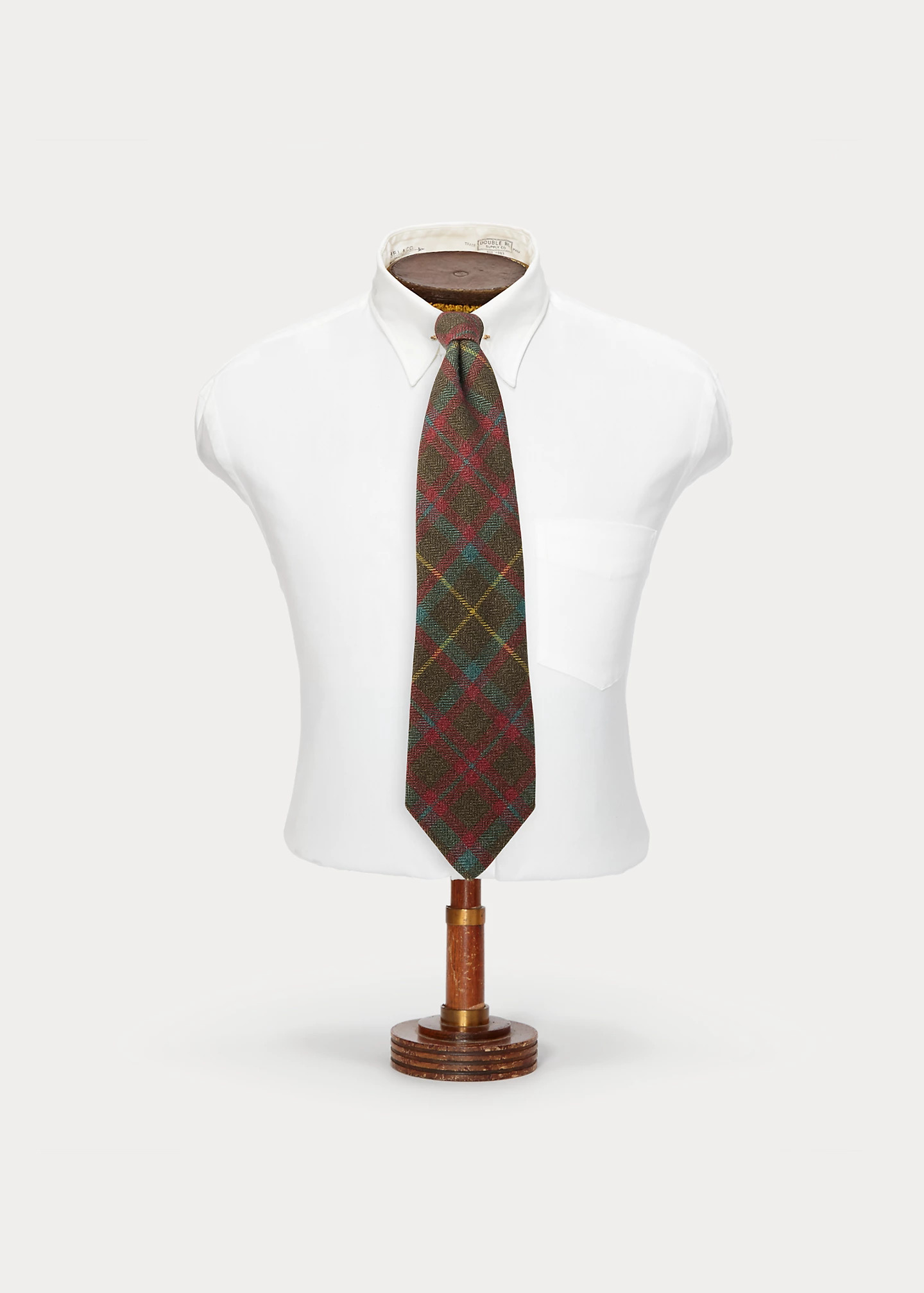 Wide tie shape is based on neckwear from the 1940s and ’50s. Handmade in Como, Italy with cashmere-and-wool herringbone cloth. Printed with a tartan-inspired plaid motif. Cut on a 45-degree bias, so it will never twist or turn. Untipped to maintain its vintage character. DETAILS - Approx. 3.75" wide. - 53% cashmere, 47% wool. - Dry clean. - Made in Italy. - Style Number: 100067373