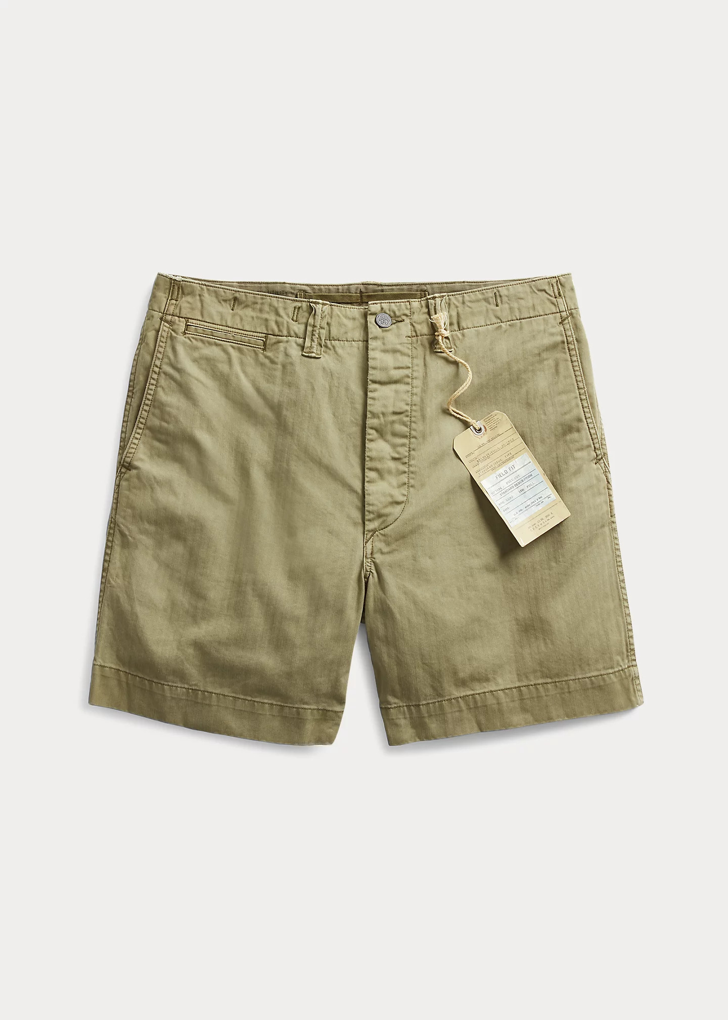 Classic-fitting shorts made from lightweight cotton twill. Garment-dyed and washed. Buttoned waistband tabs. American-made buttons. DETAILS - Classic fit with a straight leg and a high rise. - All sizes have a 6¾" inseam. Size 32W has an 12½" rise. - Buttoned side adjusters. Belt loops. Button fly with a buttoned closure. - Two front angled pockets. Right hip coin pocket. Back left welt pocket. Back right buttoned pocket. - 100% cotton. - Machine washable. - Imported. Style Number: 516789
