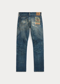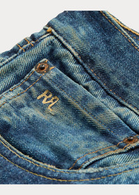 Slim-fitting jeans made from 12.75 oz. Japanese denim. Zip-fly construction. Heavily repaired. Sanforized® to minimize shrinkage. DETAILS - High Slim Fit: a medium rise and a slim thigh and leg. - Size 32W has a 9.5" rise and a 14.5" leg opening. - Hand-set, chain-stitched waistband with inserted belt loops for added durability. Zip fly with our signature buttoned closure. - American-made buttons, rivets, and washer burrs. Five-pocket styling. “RRL” embroidery at the coin pocket. - “RRL”-debossed logo label at the back right waist. - 100% cotton. - Machine washable. For best results, wear 90 days without washing. - Imported. - Dyed with true indigo, which may rub off onto fabrics, leather, and upholstery. - Style Number: 100027273