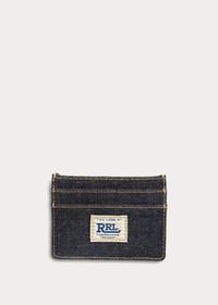 Card holder made from indigo-dyed denim. “RRL” ranch logo embroidered at the front. “The Long R” label at the back. One center slot and two card slots at each side. DETAILS - Center slot and four card slots. - “RRL” ranch logo embroidered at the front. “The Long R RRL Sanforized Shrunk” label at the back. - Lined with nylon. - 4¼" L x 3¼" W. - Shell: 100% cotton. Lining: 100% nylon. - Imported. - Comes in a box. - Dyed with true indigo, which may rub off onto fabrics, leather, and upholstery. Style Number: 493704