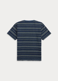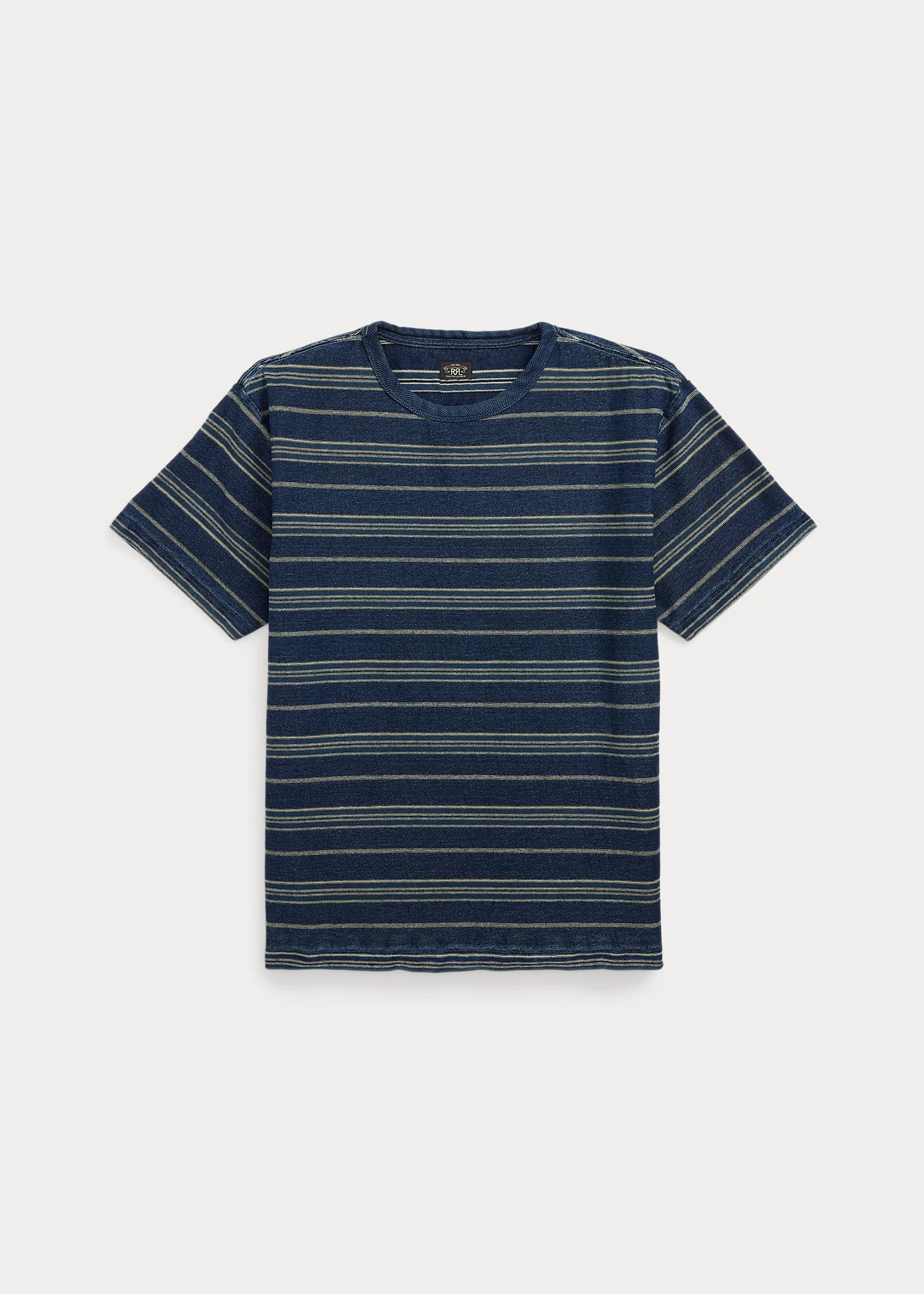 Striped T-shirt made with heavyweight cotton jersey with the reverse side facing out. Yarn-dyed with true indigo. DETAILS - Size medium has a 27.5" front body length, a 19.25" shoulder, and a 43.5" chest. - Crewneck. - Short sleeves. - 100% cotton. - Machine washable. - Imported. - Dyed with true indigo, which may rub off onto fabrics, leather, and upholstery. - Style Number: 100066408
