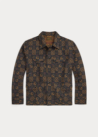 Made with brushed cotton jacquard from Italy. Based on woolen overshirts from the 1930s and ’40s. Partially lined with chamois. Hand-warmer pockets. Corozo buttons. Signature snaps with an antiqued-brass finish. DETAILS - Size medium has a 28.25" front body length, a 19" shoulder, a 46.75" chest, and a 34.75" sleeve length. Sleeve length is taken from the center back of the neck. - Straight collar. Buttoned placket. Corozo buttons. - Long sleeves with buttoned cuffs. Chamois facing at the cuffs. - Two chest snapped pockets. Two hand-warmer pockets. Two front waist snapped pockets. Chamois pocket bags and facing at the pocket flaps. Metal snaps custom-developed with a “Double RL Ralph Lauren Manhattan N.Y.” logo. - Lined at the front body with chamois. - Shell and front body lining: 100% cotton. - Machine washable. - Imported. - Style Number: 100063597