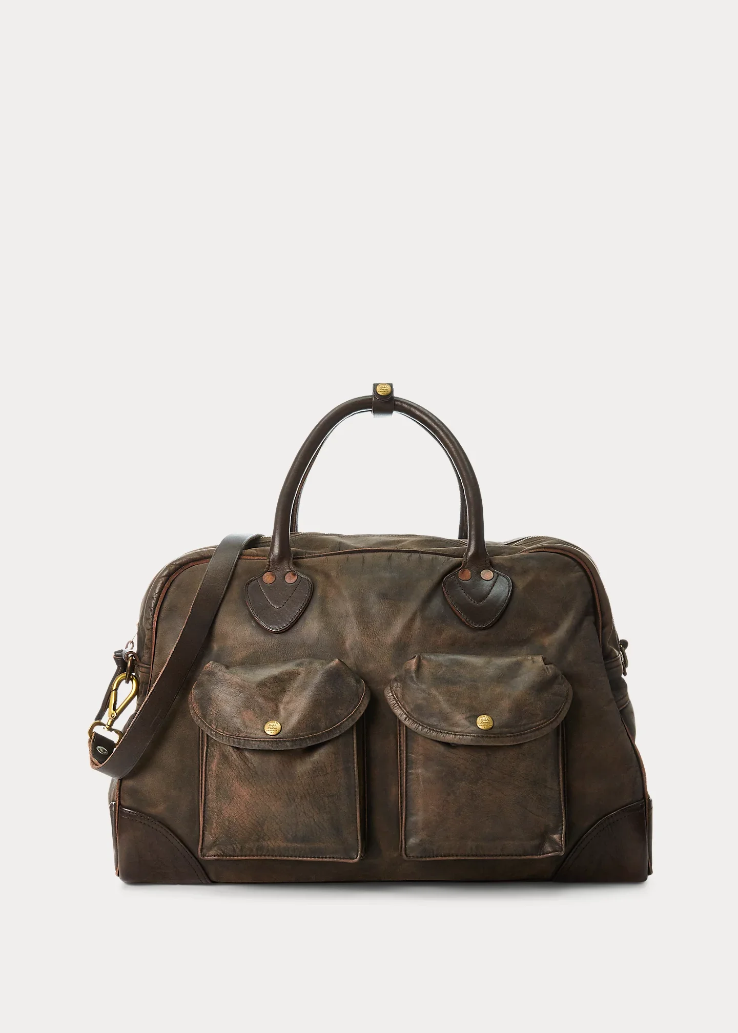 Made from lightweight, supple buffalo hide. Specially hand-finished for a timeworn look. Removable, adjustable cowhide shoulder strap with a leather shoulder pad for comfort. Fully lined with cotton canvas. Brass hardware and distressed copper-tone rivets. DETAILS - Two leather top handles, each with a 5½" drop. Removable, adjustable leather shoulder strap with a leather shoulder pad and a maximum 24" drop. - Top zip closure. Brass hardware. - Two snapped pockets at the exterior. One snapped pocket at the front interior. One zip pocket and two slip pockets at the back interior. - Reinforced base. Distressed copper-tone rivets. - Fully lined with canvas. - 15" H x 19" W x 5" D. - Shell and trim: leather. Lining: cotton. - Imported. - Comes with a dust bag. Style Number: 617376