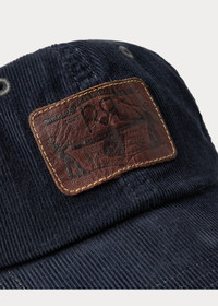 Trucker cap made with fine-wale corduroy. Leather patch debossed with a custom graphic featuring the Double RL Ranch logo at the front. Signature green underbill. Leather strap at the back with an antiqued-brass buckle. DETAILS - Seamed bill. Signature green underbill. - Six-panel construction. Ventilating embroidered eyelets. - Twill sweatband. Mesh panel at the interior front crown. - Leather patch debossed with a “RRL & Co” graphic and “Ralph Lauren” banner at the front. - Adjustable leather strap at the back with an antiqued-brass buckle. - 22.75" inner circumference. - Shell and underbill: 100% cotton. Trim: 100% leather. Interior trim: 100% polyester. - Spot clean. - Imported. - Style Number: 100048405