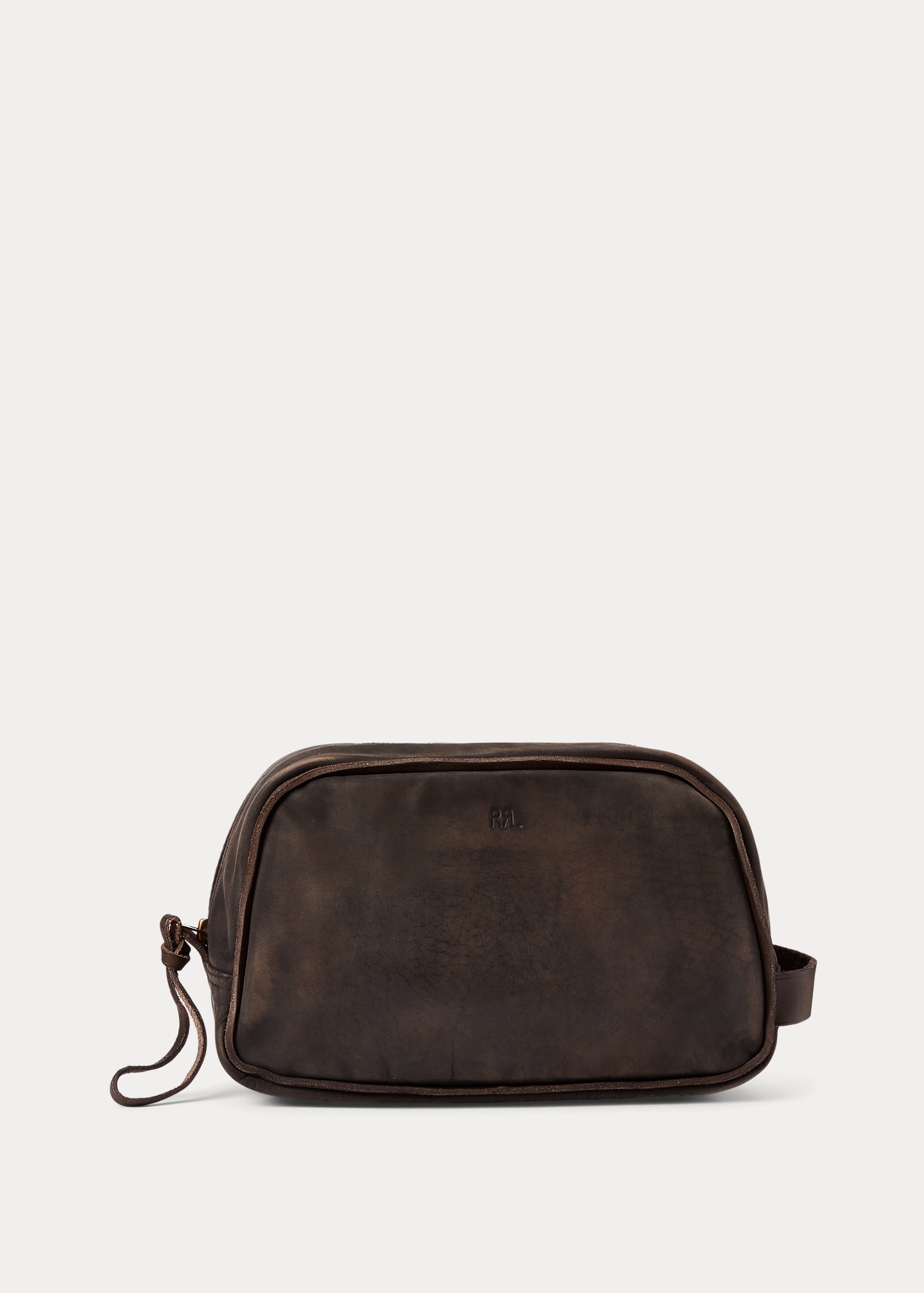 Made with lightweight, supple leather. Lined with cotton canvas. Two pockets at the interior. “RRL” logo debossed at the front. Brass zipper. DETAILS - Leather handle at one side. - Top zip closure with a leather zipper pull. - “RRL” debossed at the front. - Two interior pockets. - Lined with cotton canvas. - 6" H x 10" L x 4.5" D. - Shell: 100% leather. Lining: 100% cotton. - Imported. - Style Number: 634625