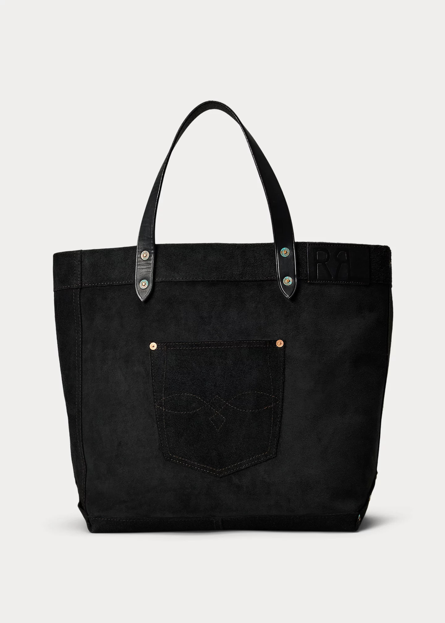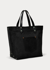 Made in a new, limited-edition colorway of the roughout suede from Ralph Lauren’s Double RL Ranch in Ridgway, Colorado. Cowhide is finished using traditional methods at a historic Minnesota tannery. Leather top handles. Front pocket inspired by Double RL denim. Leather patch embossed with the Double RL Ranch logo at the front. Unlined. Custom hardware. Distressed copper-tone rivets with leather washers. DETAILS - Two leather top handles, each with a 8" drop. - Open top. - Front patch pocket with Western-style decorative stitching. Interior zip pocket. - Leather patch embossed with the Double RL Ranch logo at the front right corner. - Reinforced base. Distressed copper-tone rivets with leather washers. Unlined. - This size is suitable for a laptop, tablet, and other personal electronic devices. - 14.5" H x 13.75" L x 7" D. - Shell: suede. Handles and trim: leather. - Brush away any surface dirt with a clean, soft brush. For harder to remove stains, we recommend professional cleaning by a leather specialist. Imported. - Style Number: 100066660