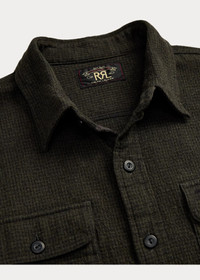 Made with a fiber-dyed cotton fabric that is woven with a micro-plaid pattern. Brushed finish. Authentic runoff chain-stitched construction at the side seams, which is based on workshirts from the 1920s and ’30s. DETAILS - Workshirt Fit: Double RL’s slightly more relaxed fit with more ease through the body and sleeves. - Size medium has a 29" back body length, an 18.25" shoulder, a 43.5" chest, and a 34.75" sleeve length. Sleeve length is taken from the center back of the neck. - Straight collar. Buttoned placket. - Long sleeves with buttoned barrel cuffs. - Two chest buttoned pockets. - Authentic runoff chain-stitched construction at the side seams. - 100% cotton. - Machine washable. - Imported. - Style Number: 100064979