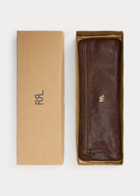 Packable travel slipper and coordinating pouch made with lightweight, supple leather. Specially developed for a vintage look. Vegetable-tanned leather outsole. Pouch features a brass zipper and the Double RL Ranch logo. Slipper and pouch are lined with cotton canvas. Available in men’s sizes from 5 to 13. We suggest women order two sizes smaller than their usual size. Please see the size chart for a conversion guide. DETAILS - Rounded toe. - Slip-on styling. - Double RL Ranch logo and “Ralph Lauren” foil-printed at the front of the pouch. - Slipper and pouch are lined with cotton canvas. - Leather outsole. - Slipper upper and pouch: 100% leather. Slipper lining and pouch lining: 100% cotton. - Imported. - Comes in a signature box. - Available in men’s sizes from 5 to 13. We suggest women order two sizes smaller than their usual size. Please see the size chart for a conversion guide. - Style Number: 100066788